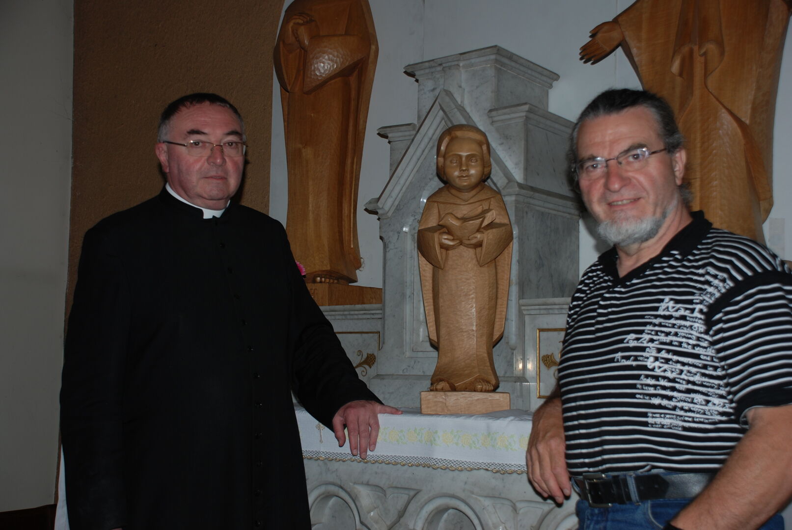 Création en bois de cet enfant Jésus afin de compléter les deux Saints réalisés initialement par l’artiste RAMEL. Joseph et Marie sont ainsi rassemblés en 2009.